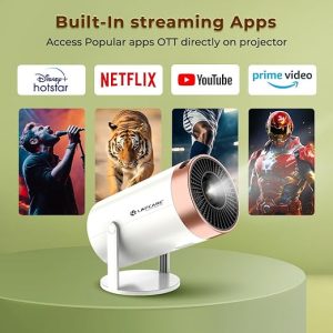 The LAPCARE LLP-012 LED Projector offers an immersive viewing experience with 1080p HD resolution and 2500 lumens brightness for clear visuals. Its rotatable design ensures flexible placement, while built-in streaming apps and screen mirroring make entertainment seamless. Equipped with a 3W speaker, 1GB RAM, and 8GB ROM, it’s perfect for home or office use.